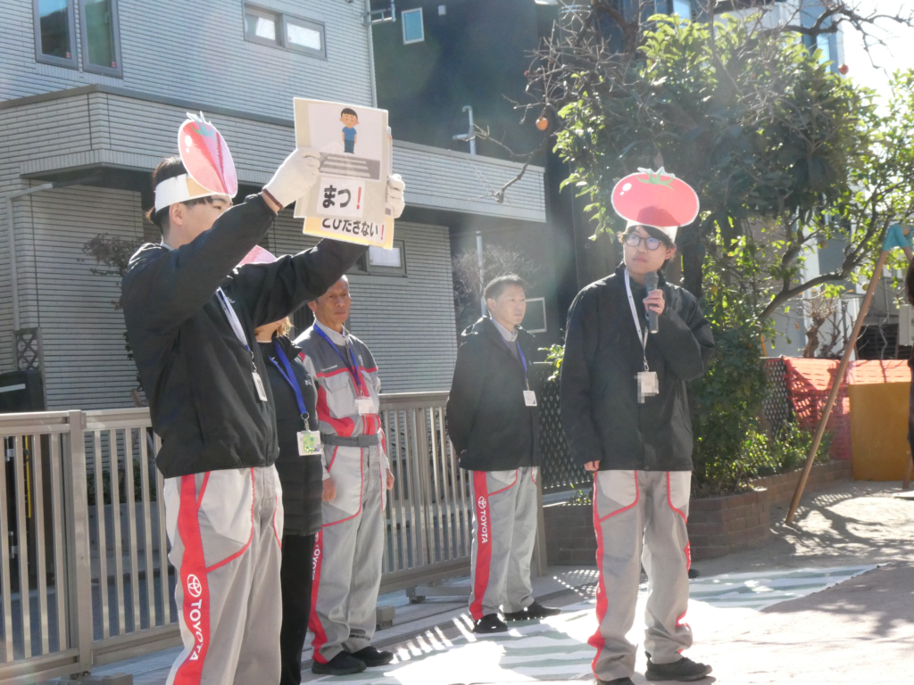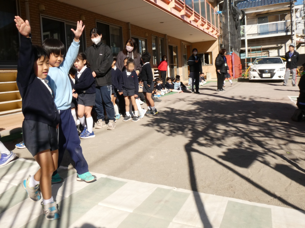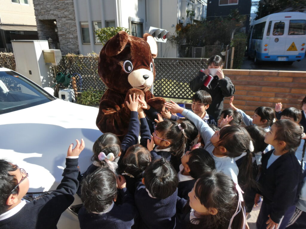 快晴に恵まれた12月12日、園庭にて交通安全教室を開催いたしました。横断歩道の渡り方や信号の見方など、みんなで楽しく学ぶことができました。また、車と園児たちによる「綱引き」も行われ、子どもたにとって楽しい思い出となりました。